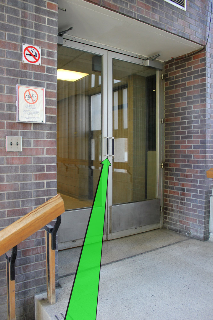 Continue walking to the entrance of the building.