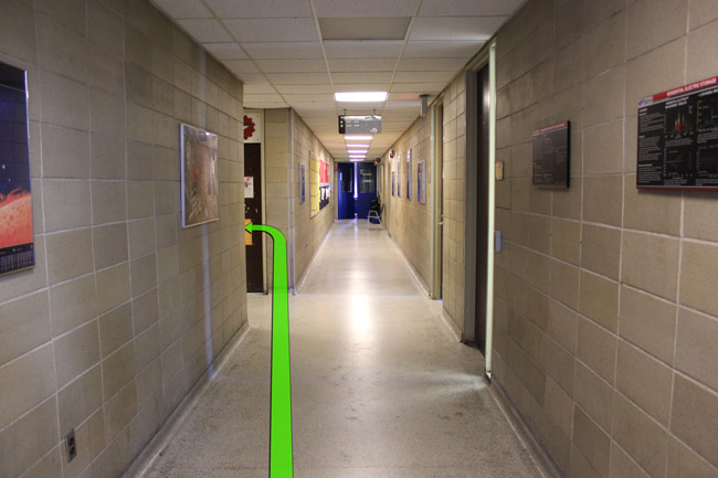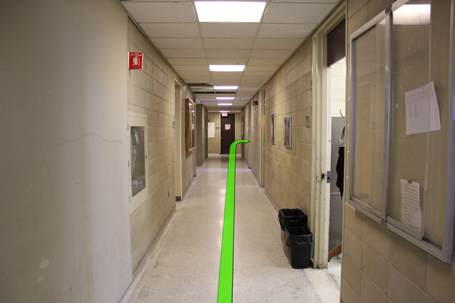 On your right, walk straight towards the set of hallway doors up ahead. Enter the hallway.