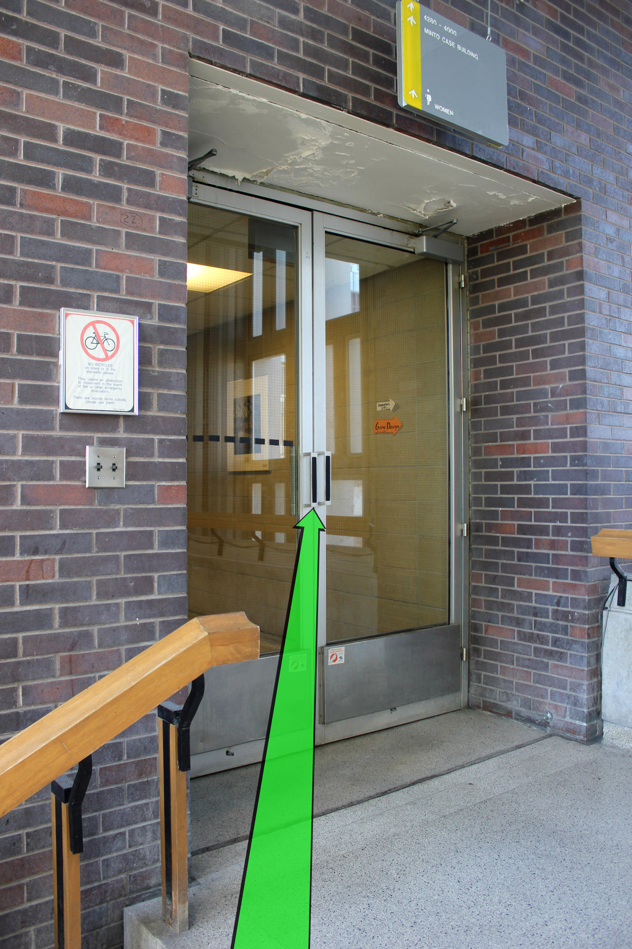Walk straight ahead towards the entrance of the Mackenzie Building.