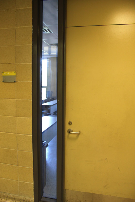 At the top of the staircase, walk straight to the set of hallway doors on your left and enter the hallway.