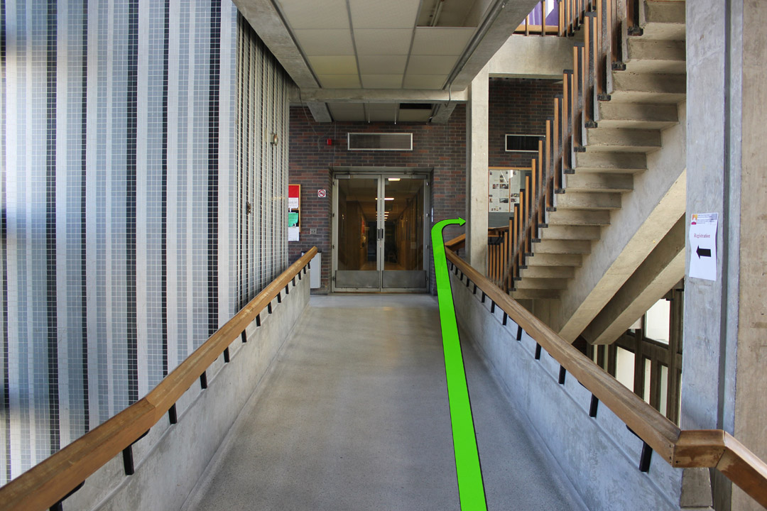 Walk straight ahead towards the entrance of the Mackenzie Building.