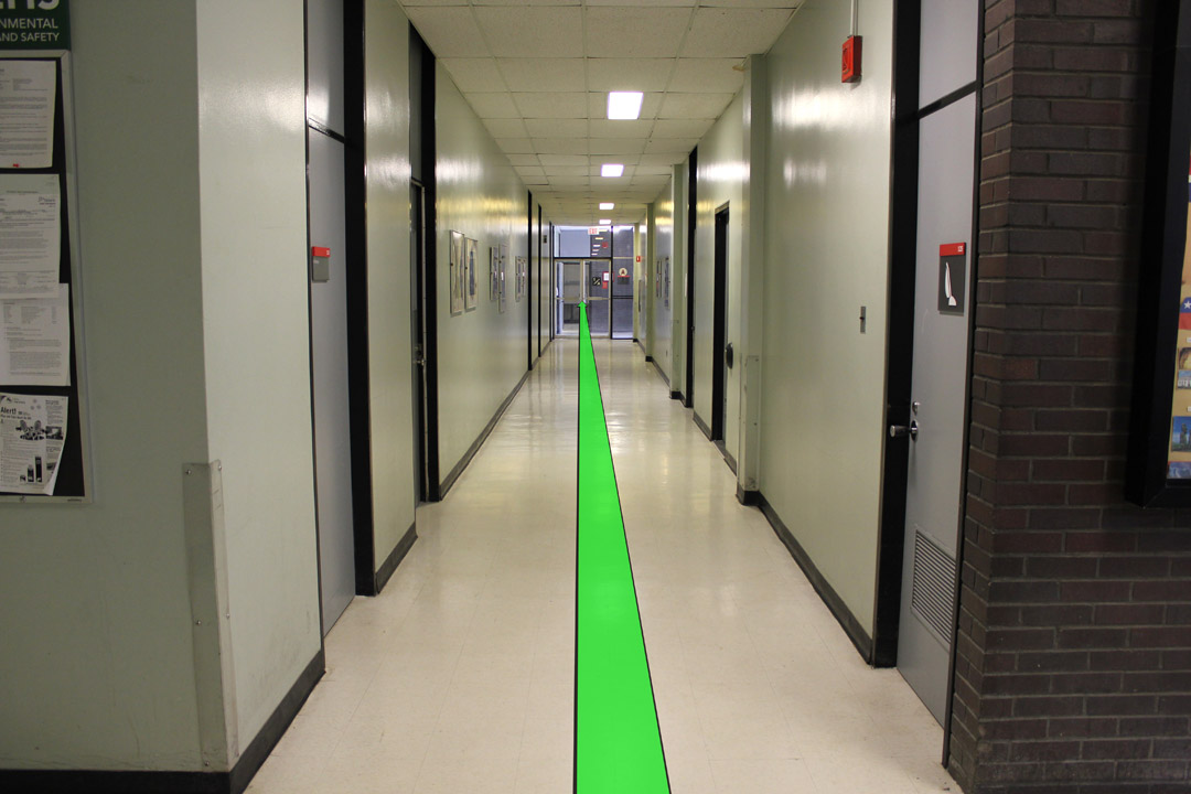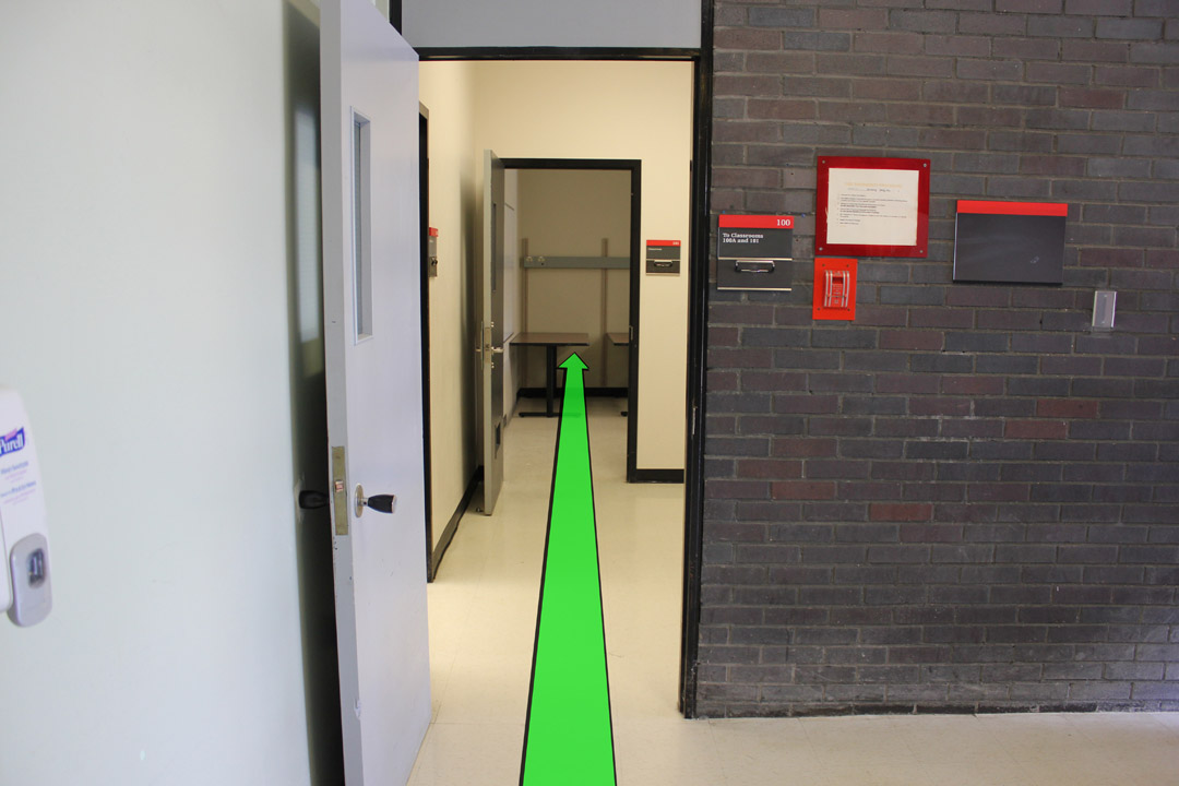 Walk straight to the end of the hallway.