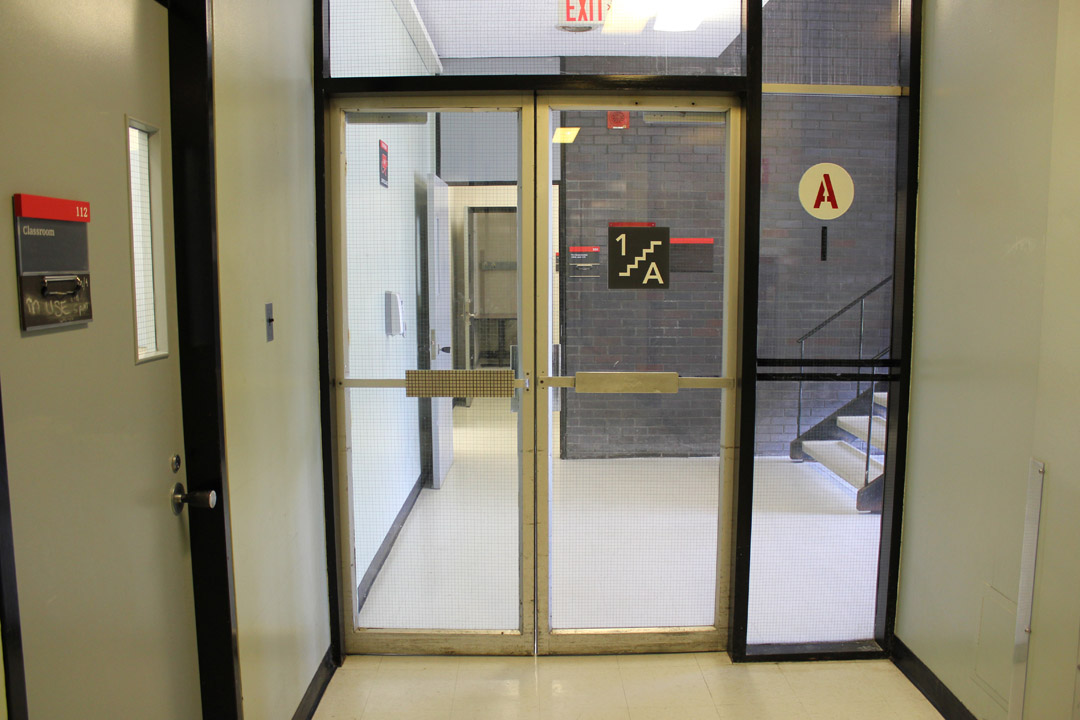 Walk straight towards the set of hallway doors on your left and enter the hallway.
