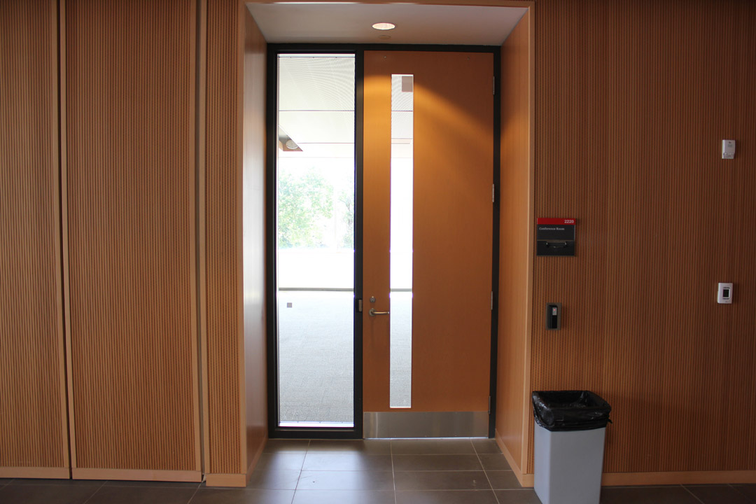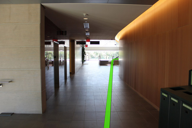 Walk from Campus Avenue towards the entrance of the River Building and enter the building.