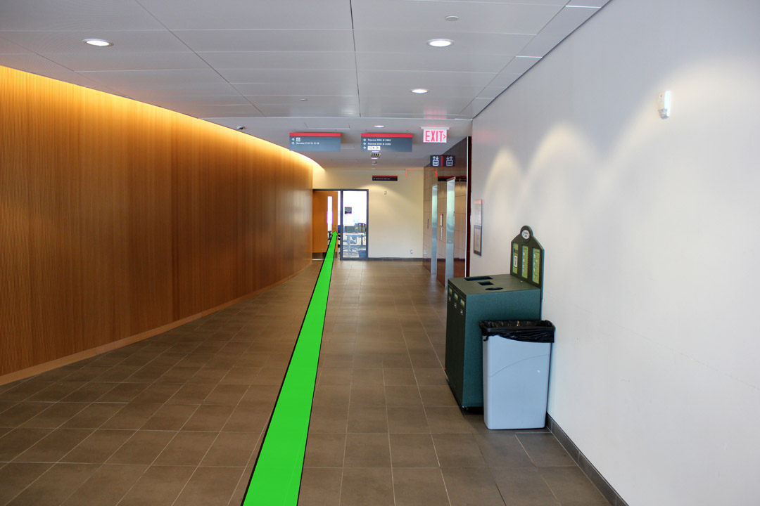Walk from Campus Avenue towards the entrance of the River Building and enter the building.