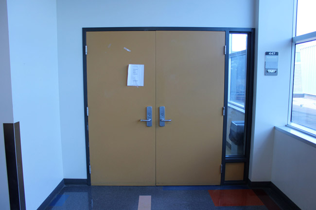 Walk towards the 4th floor door and enter the hallway.