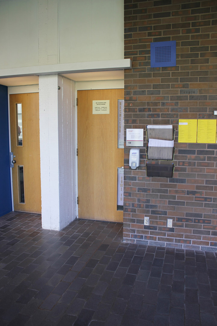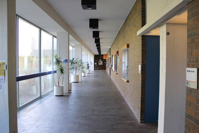 Walk up the stairs and take a right towards the Mackinnon Building entrance.