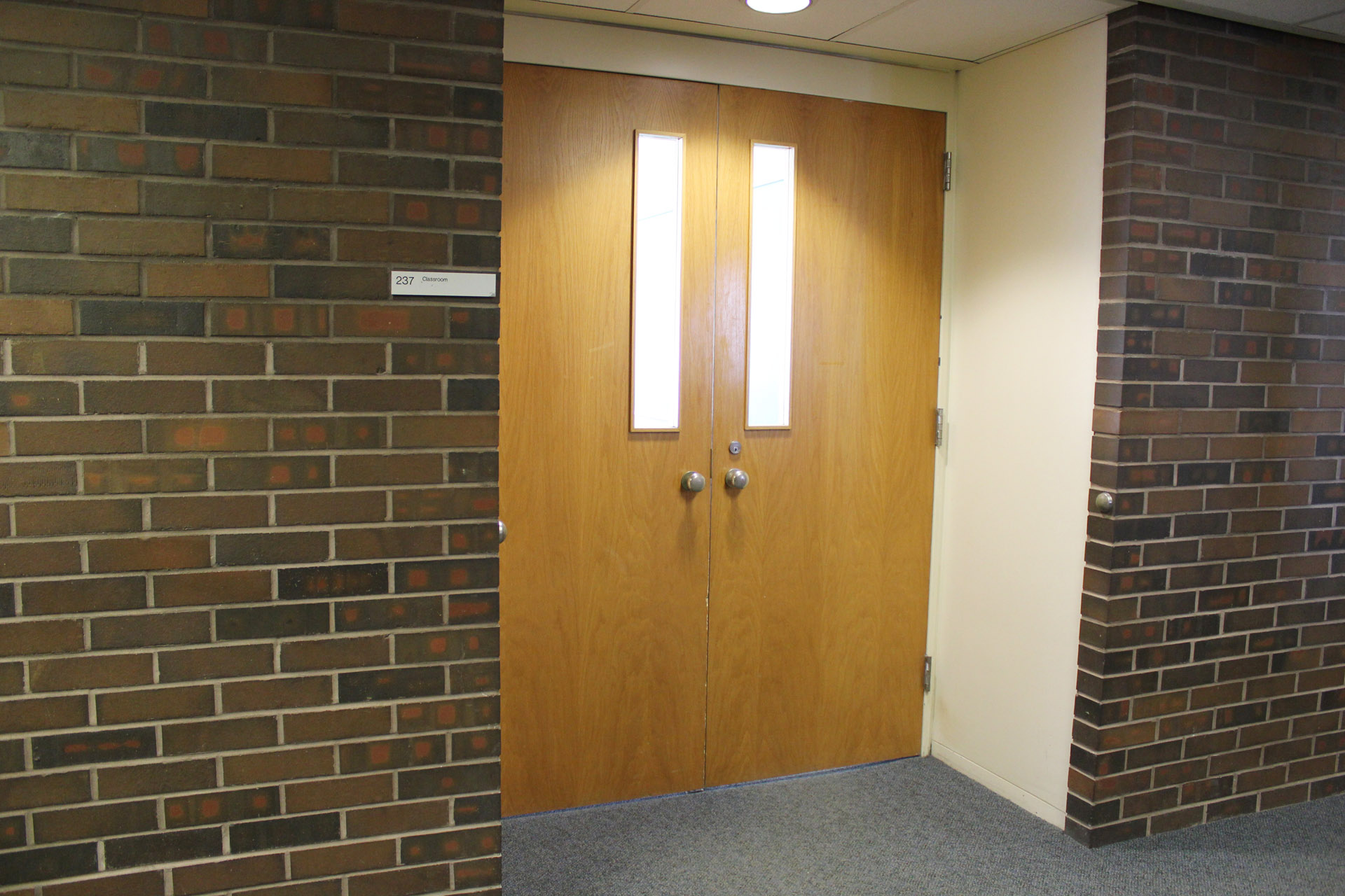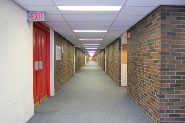 Take a left turn at the end of the hallway and walk through the next set of hallway doors.