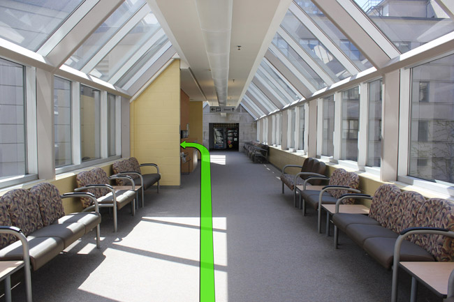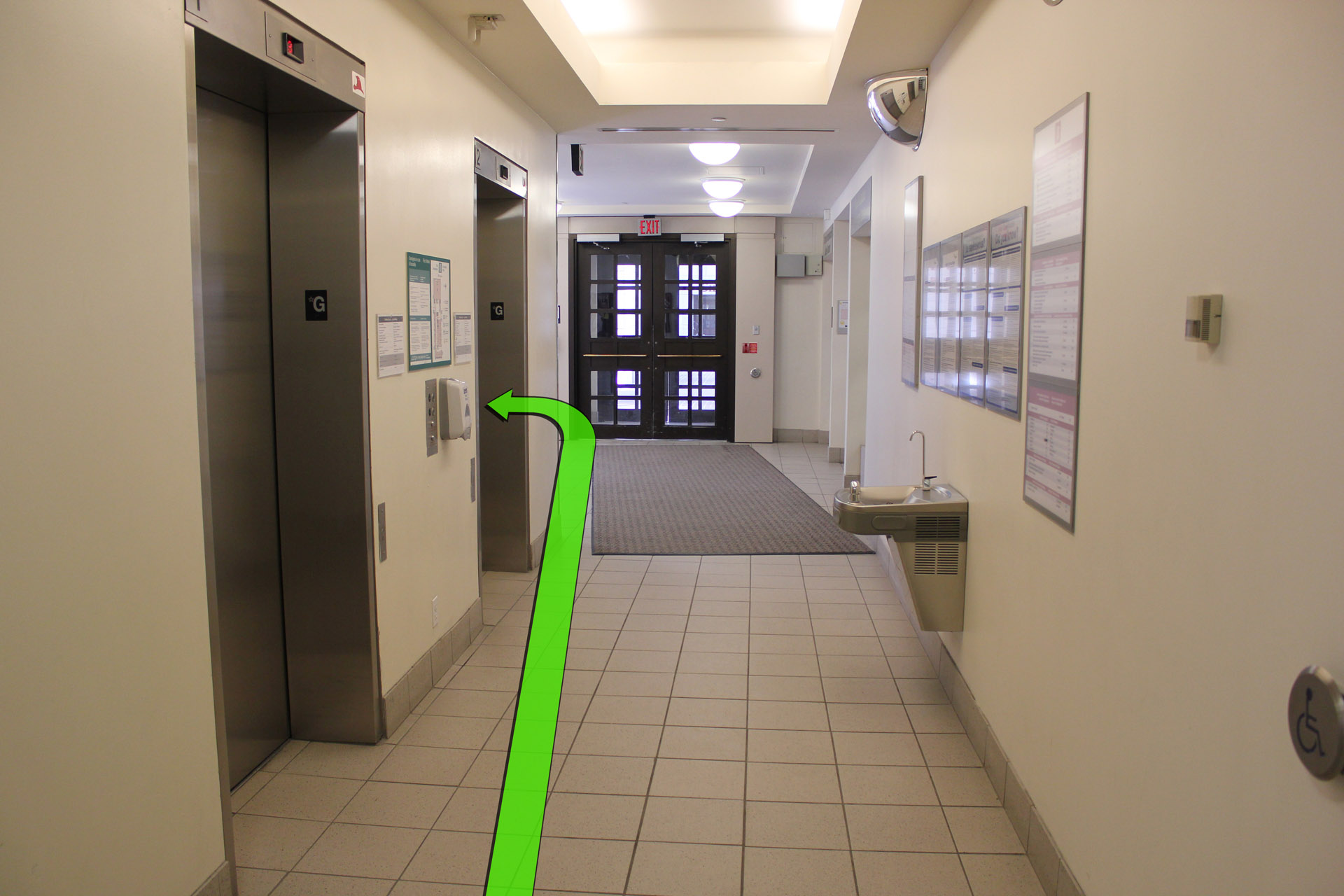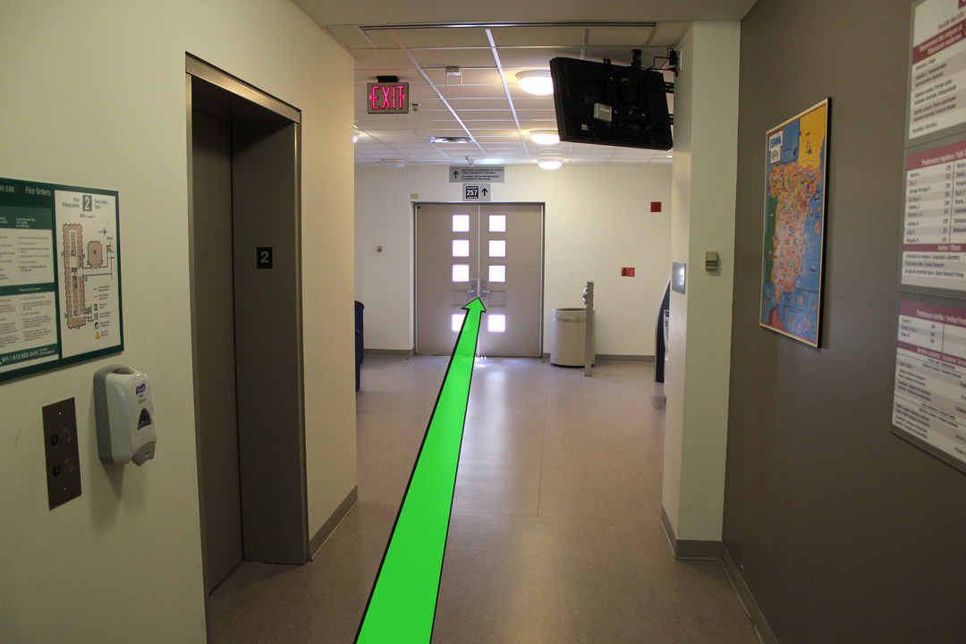 Walk towards the elevator on your left and take the elevator to the 2nd floor.