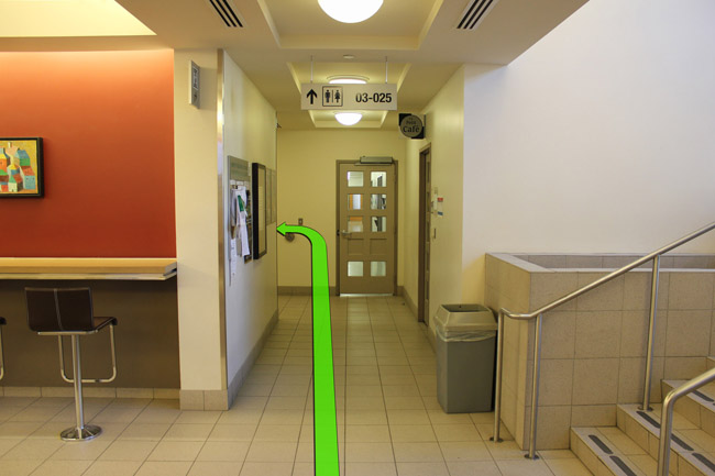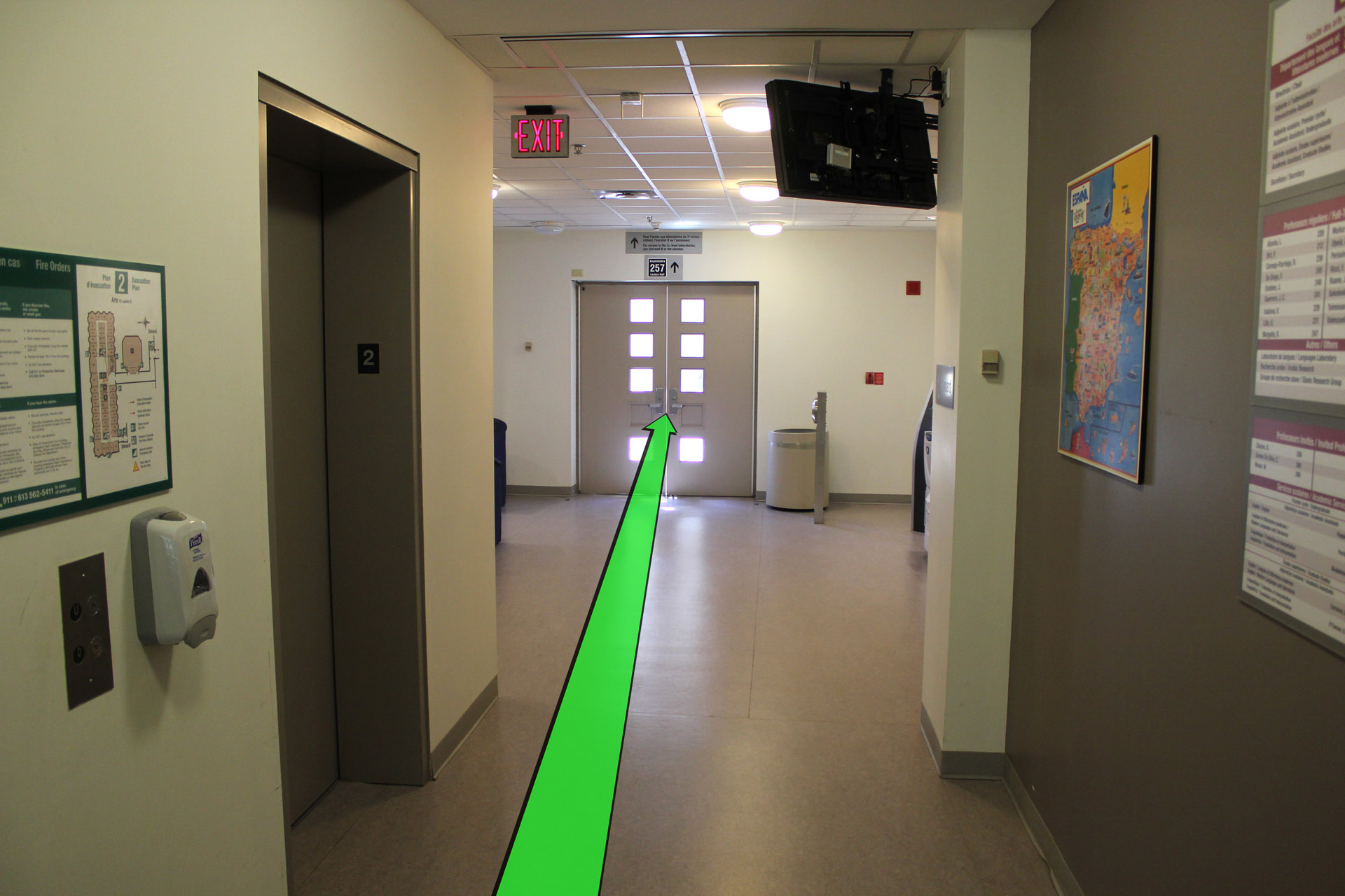 Upon reaching the 2nd floor walk straight towards the hallway doors and enter the hallway