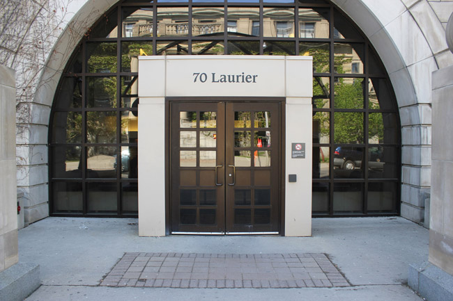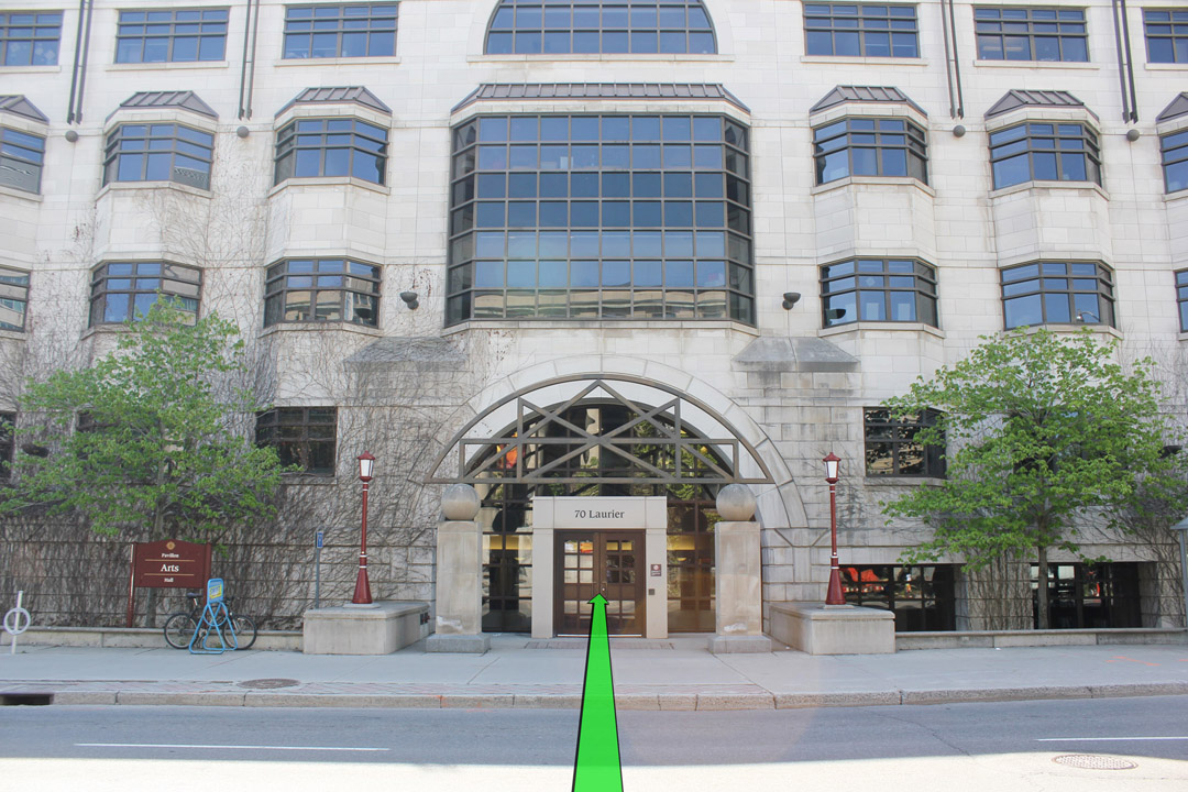 Walk from Laurier Ave. towards the Arts Hall entrance.