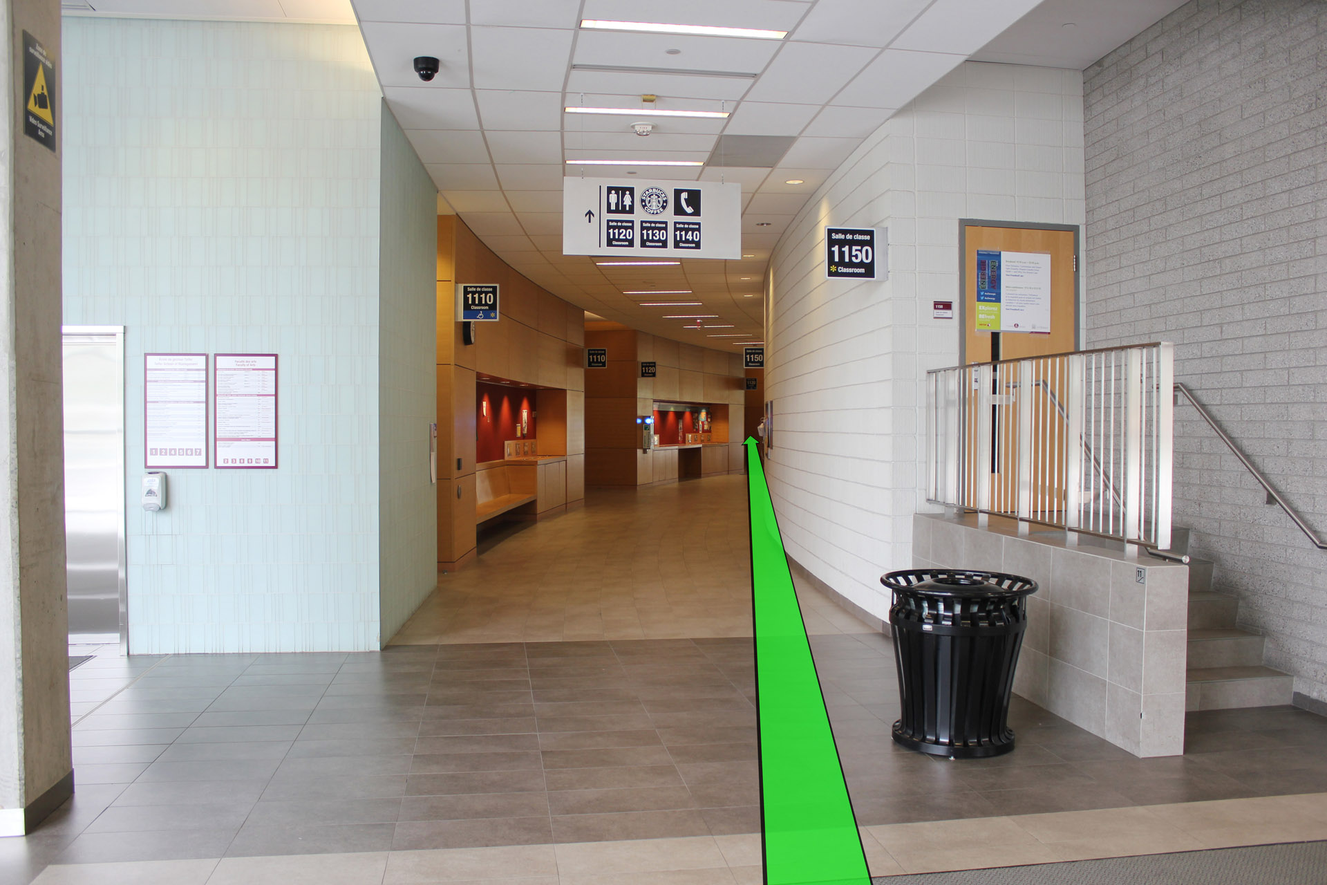 Walk from Laurier Avenue towards the Desmarais Building entrance.