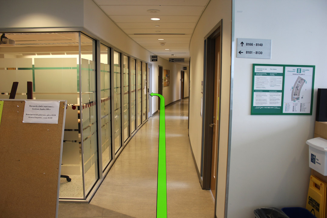 Walk from Laurier Avenue towards the Desmarais Building entrance.