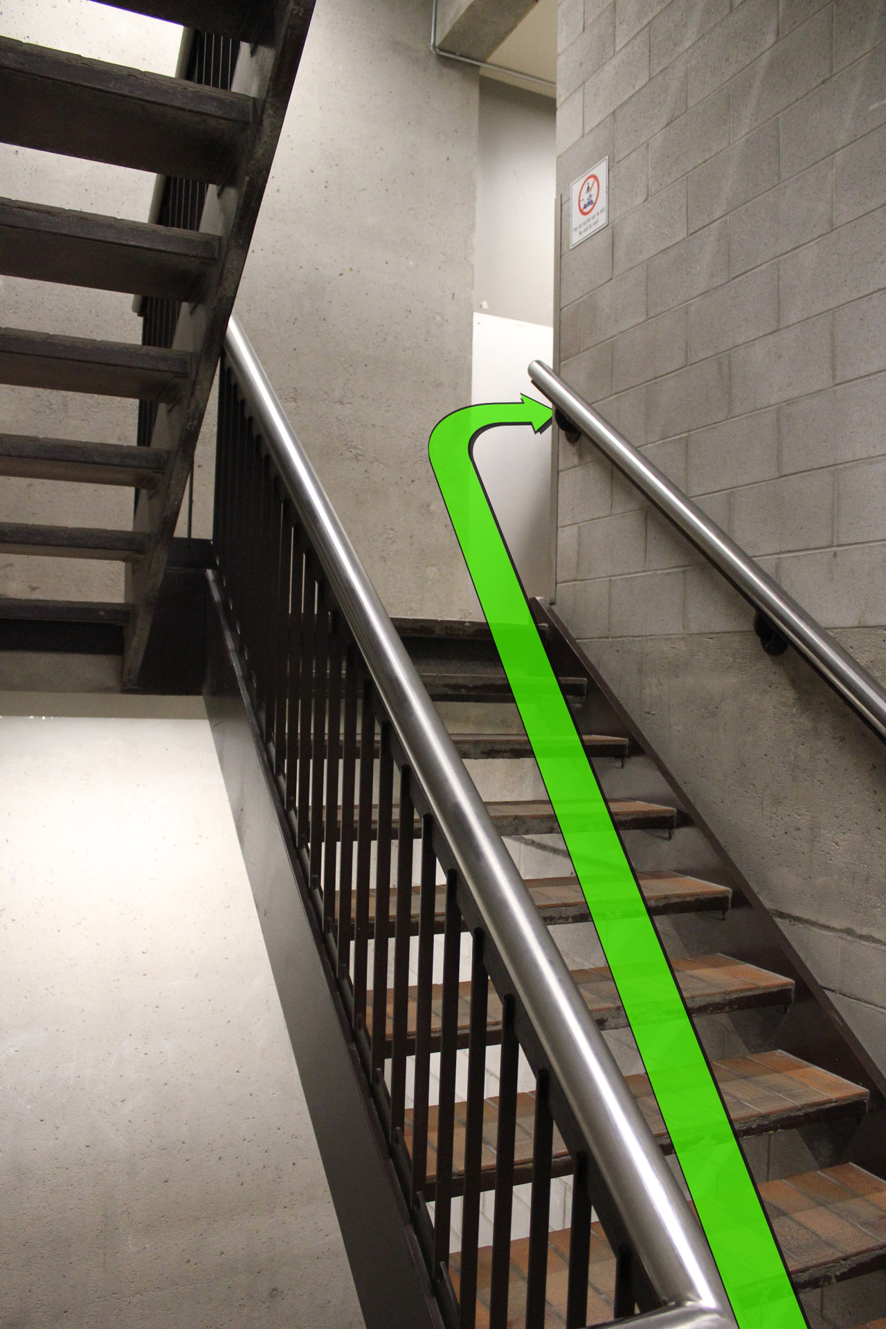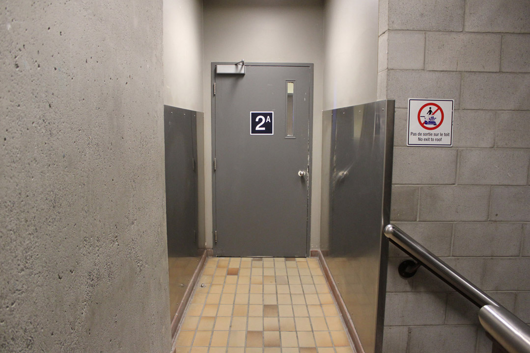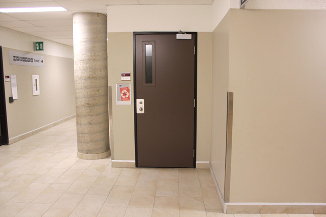 Walk straight towards the staircase door and enter the stairway.