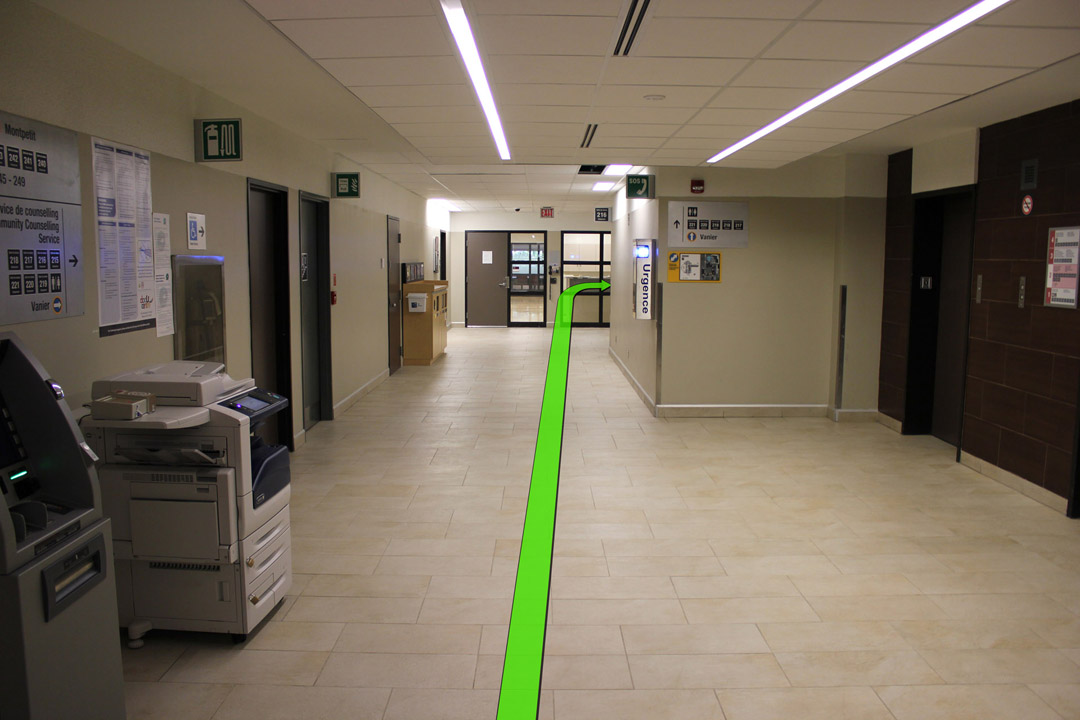 Walk from Jean Jacques Lussier towards the Lamoureux Hall entrance.
