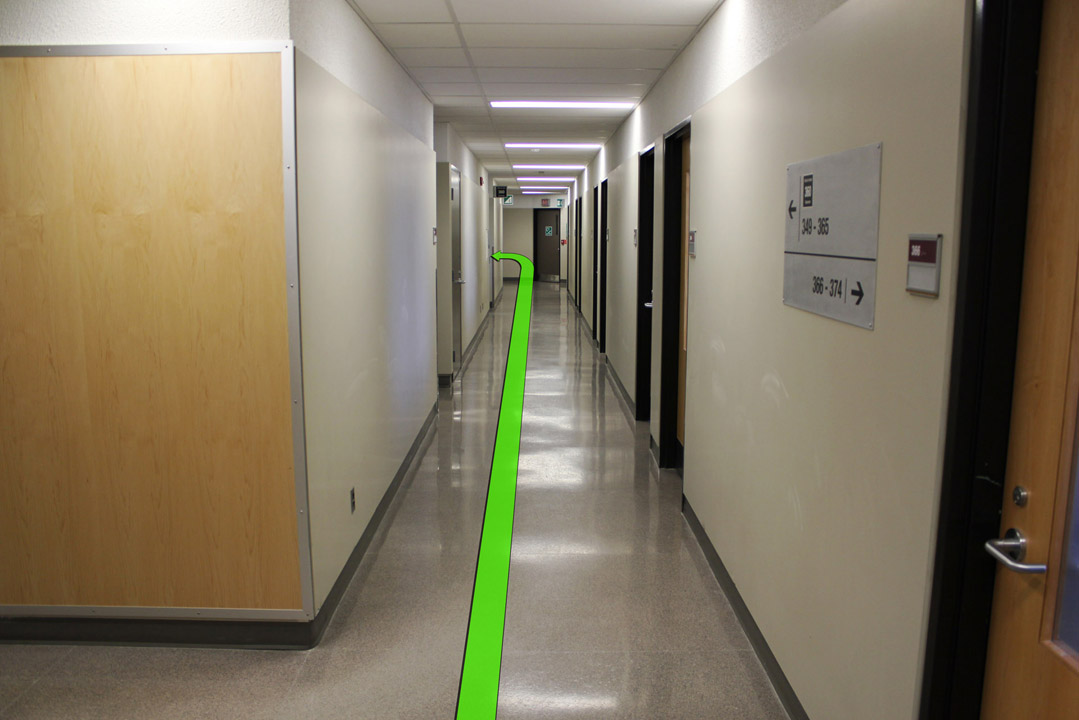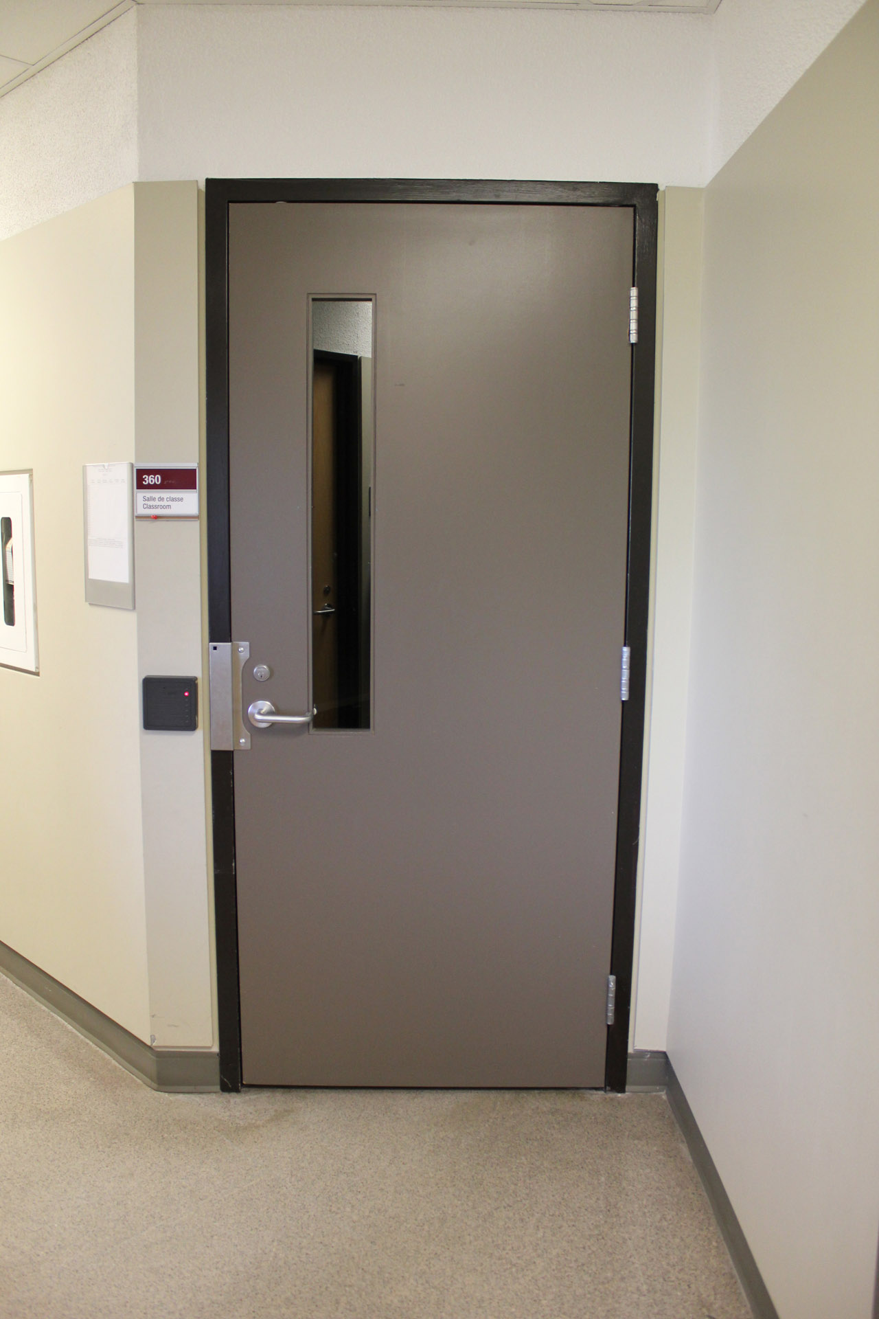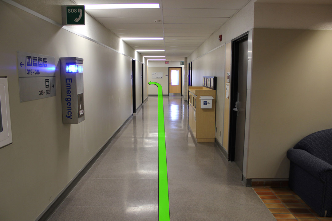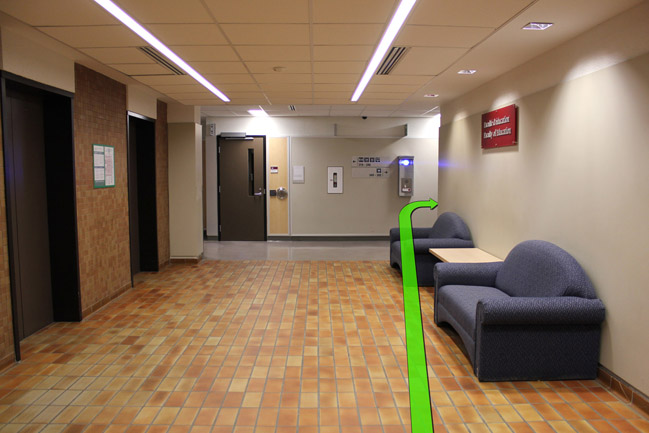 Walk from Jean Jacques Lussier towards the Lamoureux Hall entrance.