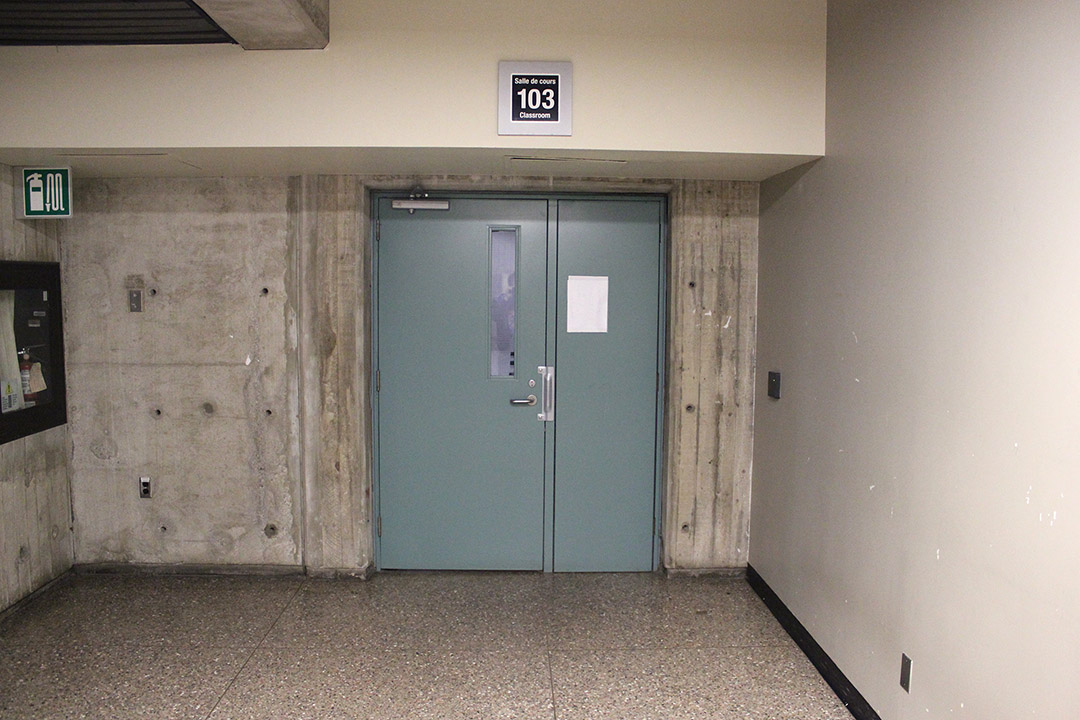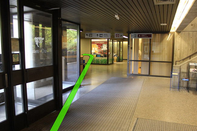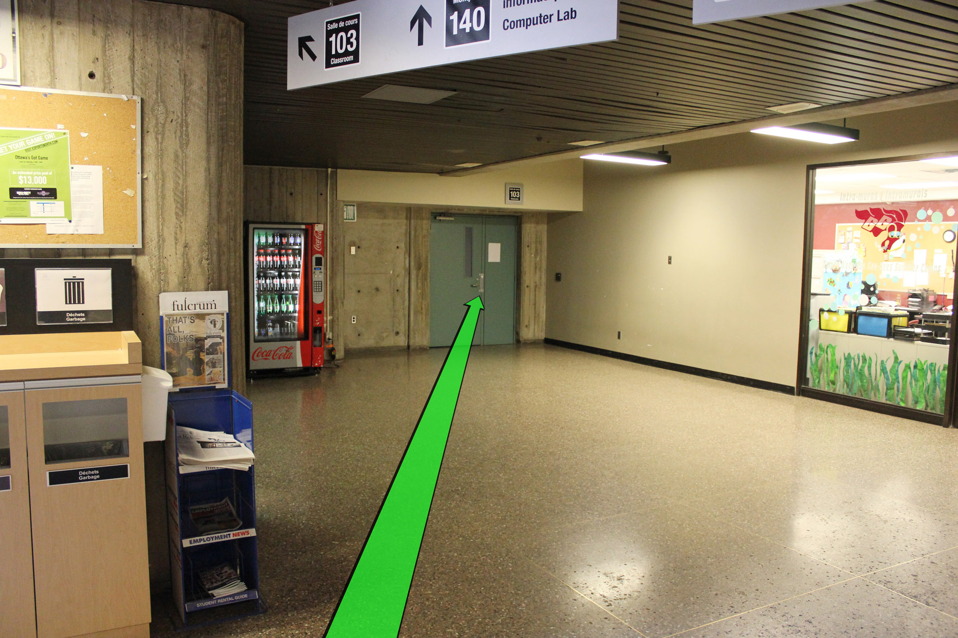 Starting from Univeristy Private, walk up the steps and take a right turn towards the entrance of Montpetit Hall.
