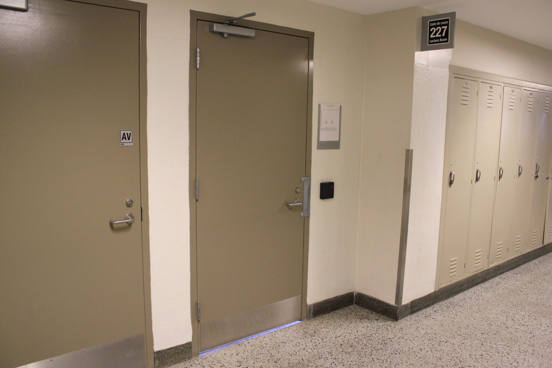 Walk towards the entrance of Simard Hall.