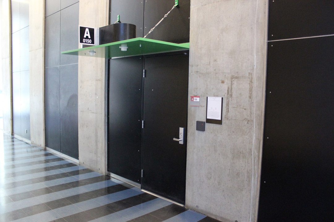 Walk from Louis Pasteur Private down the pathway towards the entrance of the building.