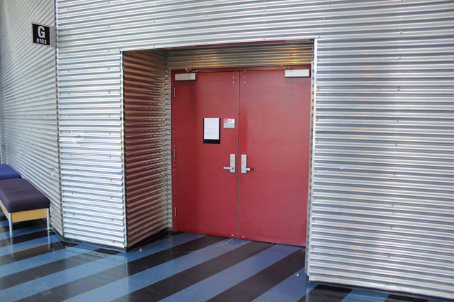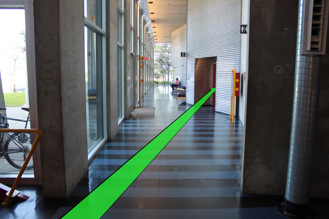 Walk towards the entrance and enter the building.