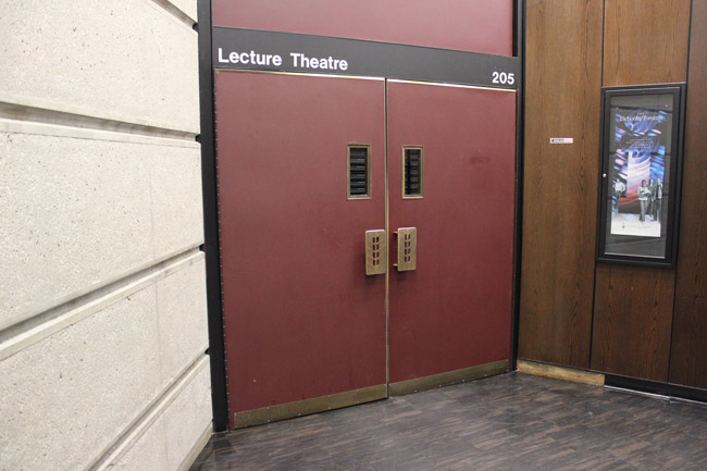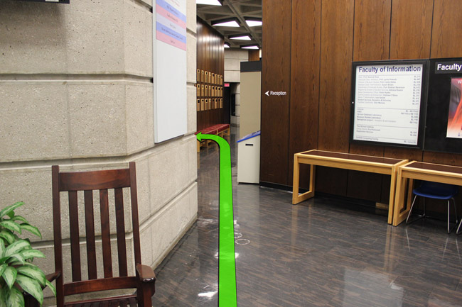 Walk from St. George Street towards the entrance of the Claude T. Bissell Building.