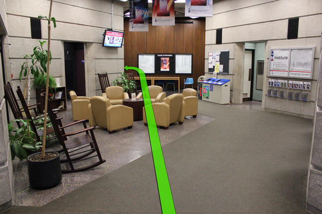 On entering the building walk straight towards the hallway up on the left.