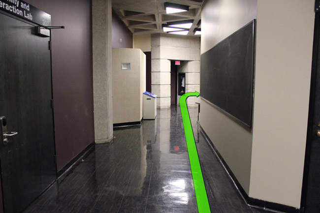 Walk down the hallway, your room will at the end of the hallway on the right.