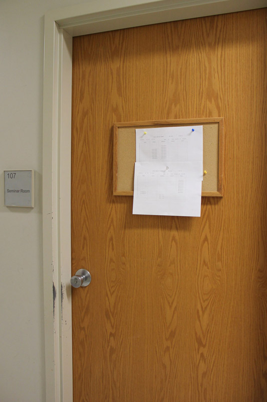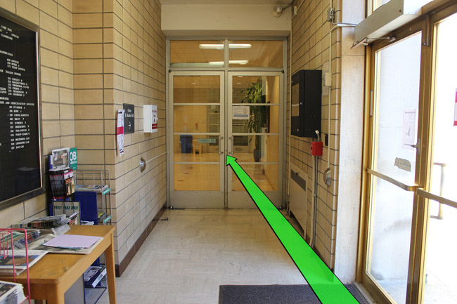 On entering the building walk through the set of hallway doors on your right.