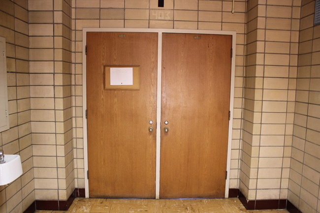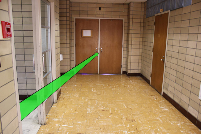 Walk straight towards the 4th floor hallway and take a left turn down the hallway.
