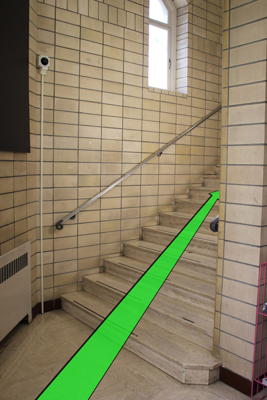 On entering the building walk towards the staircase on the left and walk upstairs to the 4th floor.