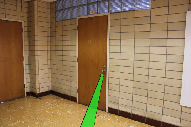 Walk straight towards the 4th floor hallway and take a left turn down the hallway.