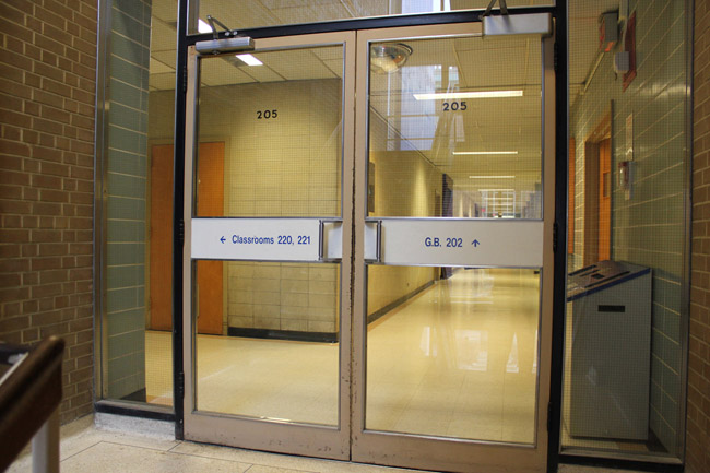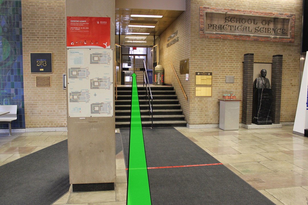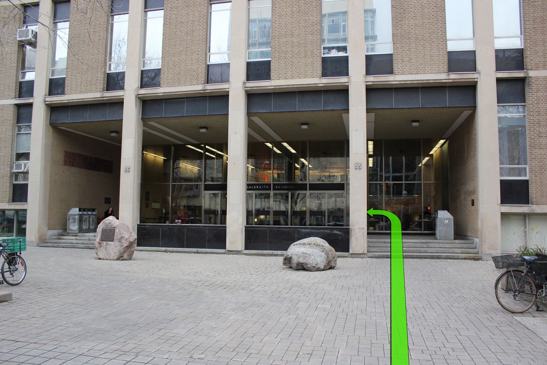 Walk from College Street towards the entrance of the building.