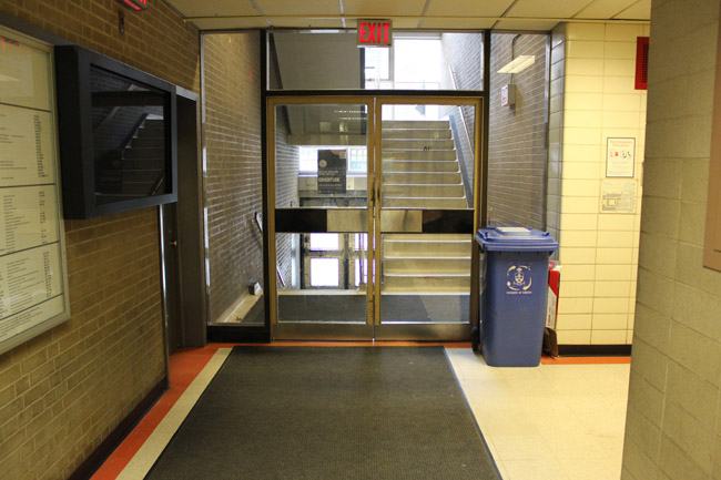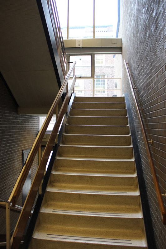 On entering the building walk to your left towards the stairway up ahead.