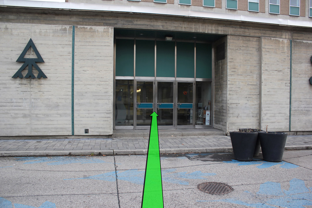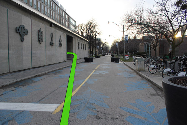 Walk from St. George Street down Willcocks Street towards the entrance of Lash Miller Chemical Labs on the left.
