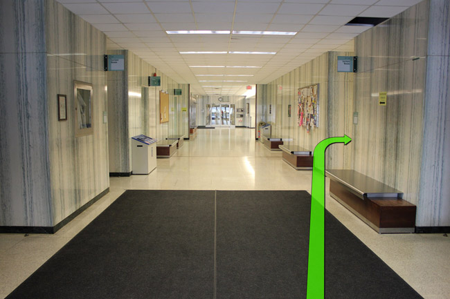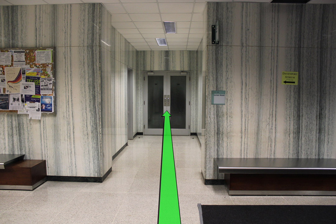 On entering the building walk straight and take a right turn up ahead.