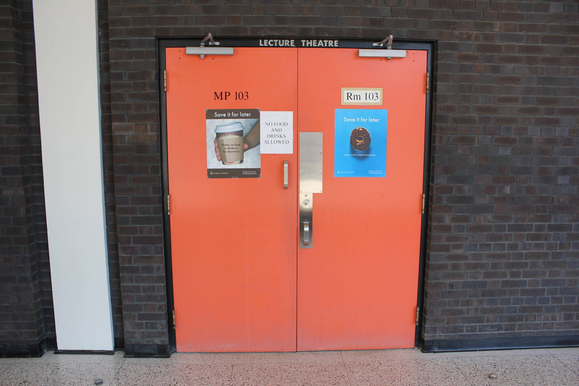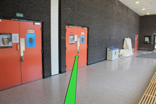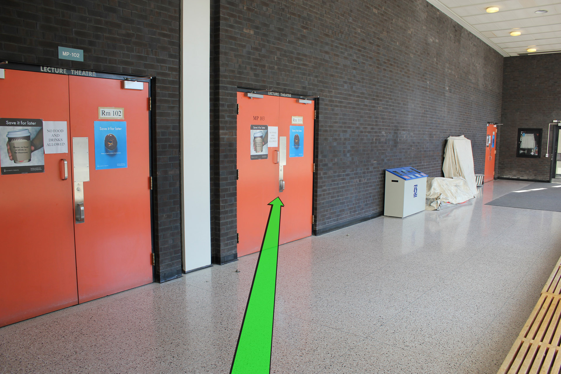 On entering the building walk towards the hallway doors on your right and enter the hallway.