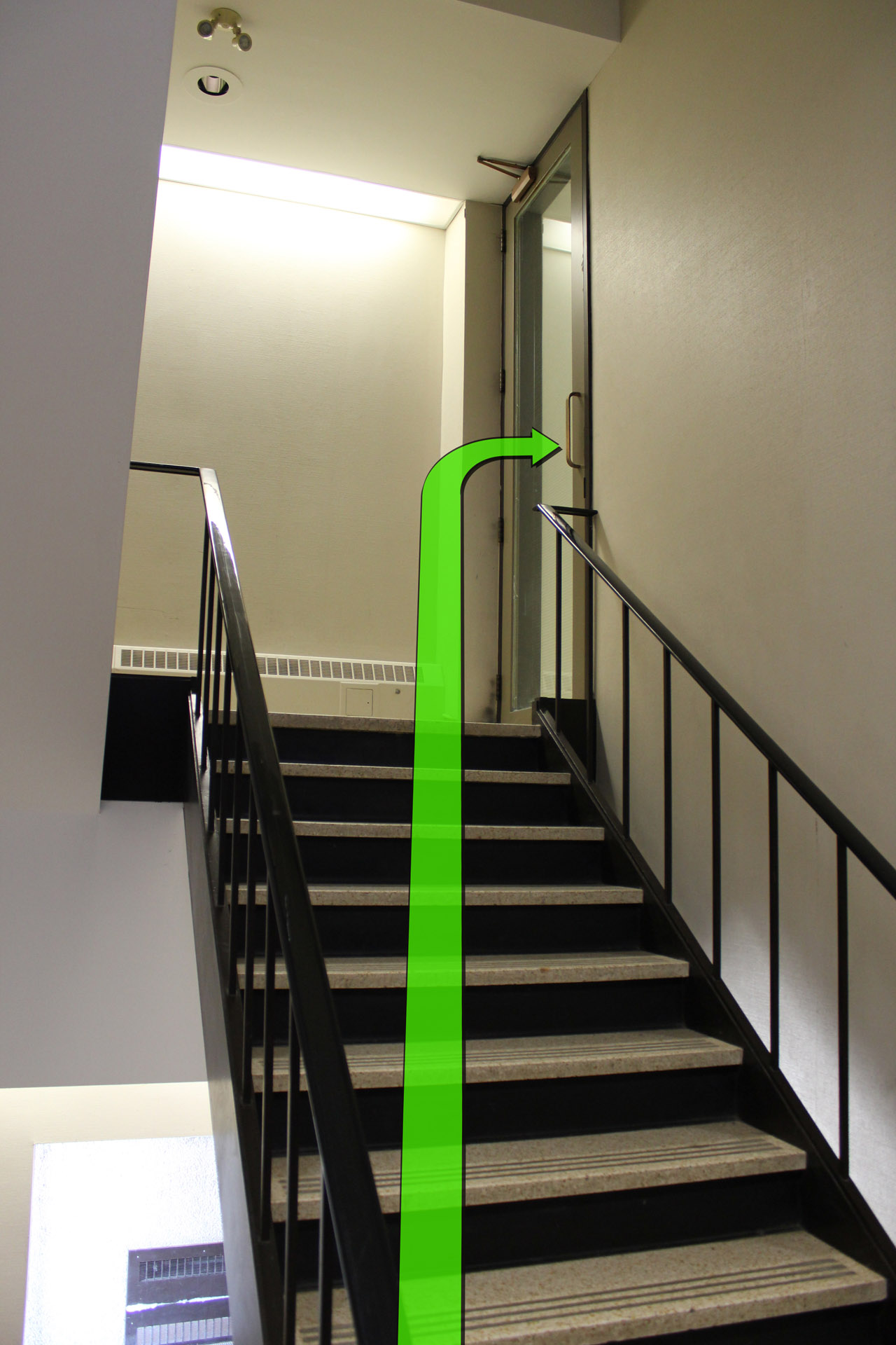 Continue walking upstairs to the 1st floor door and enter the hallway.