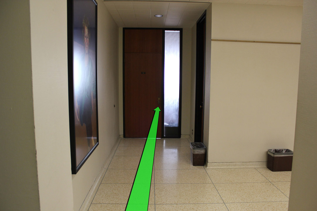 Continue walking upstairs to the 1st floor door and enter the hallway.