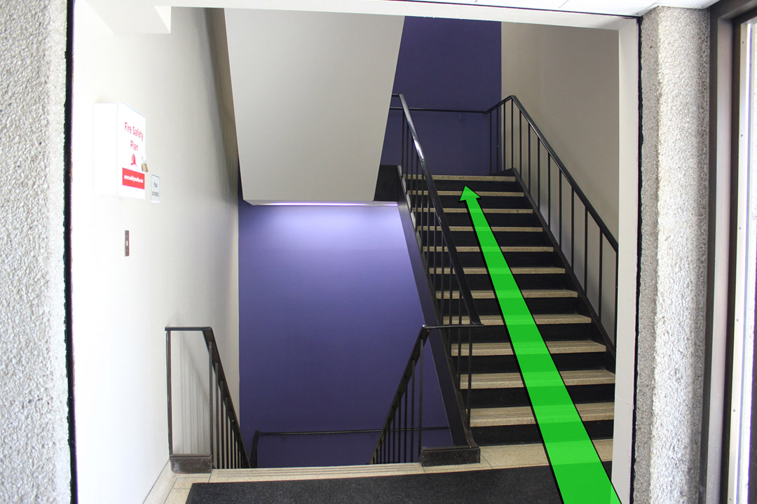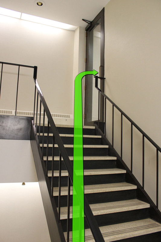 Continue walking upstairs to the 3rd floor door and enter the hallway.