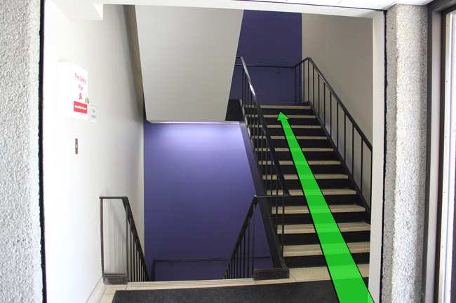 On entering the building walk up the staircase on the right to the 3rd floor.