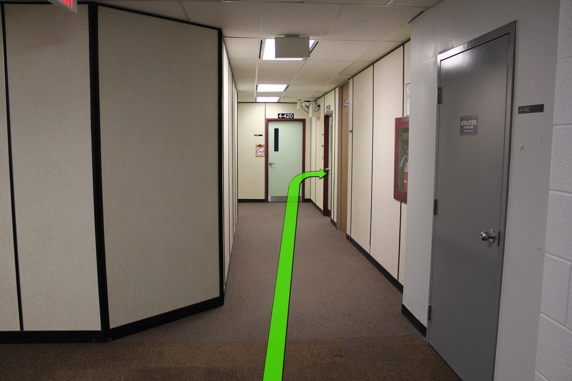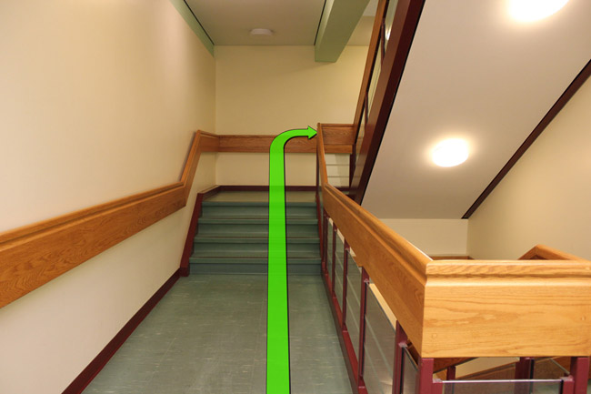 Continue walking upstairs to the 4th floor and take a left turn at the top of the stairs.