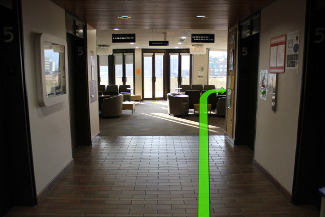At the 5th floor walk towards the hallway on your right and enter the hallway.