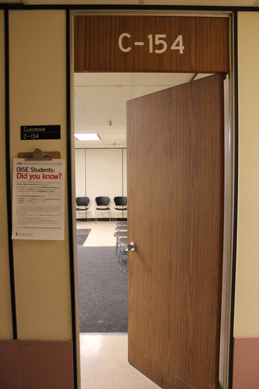 Walk from Bloor Street West towards the entrance of the Ontario Institute for Studies in Education.