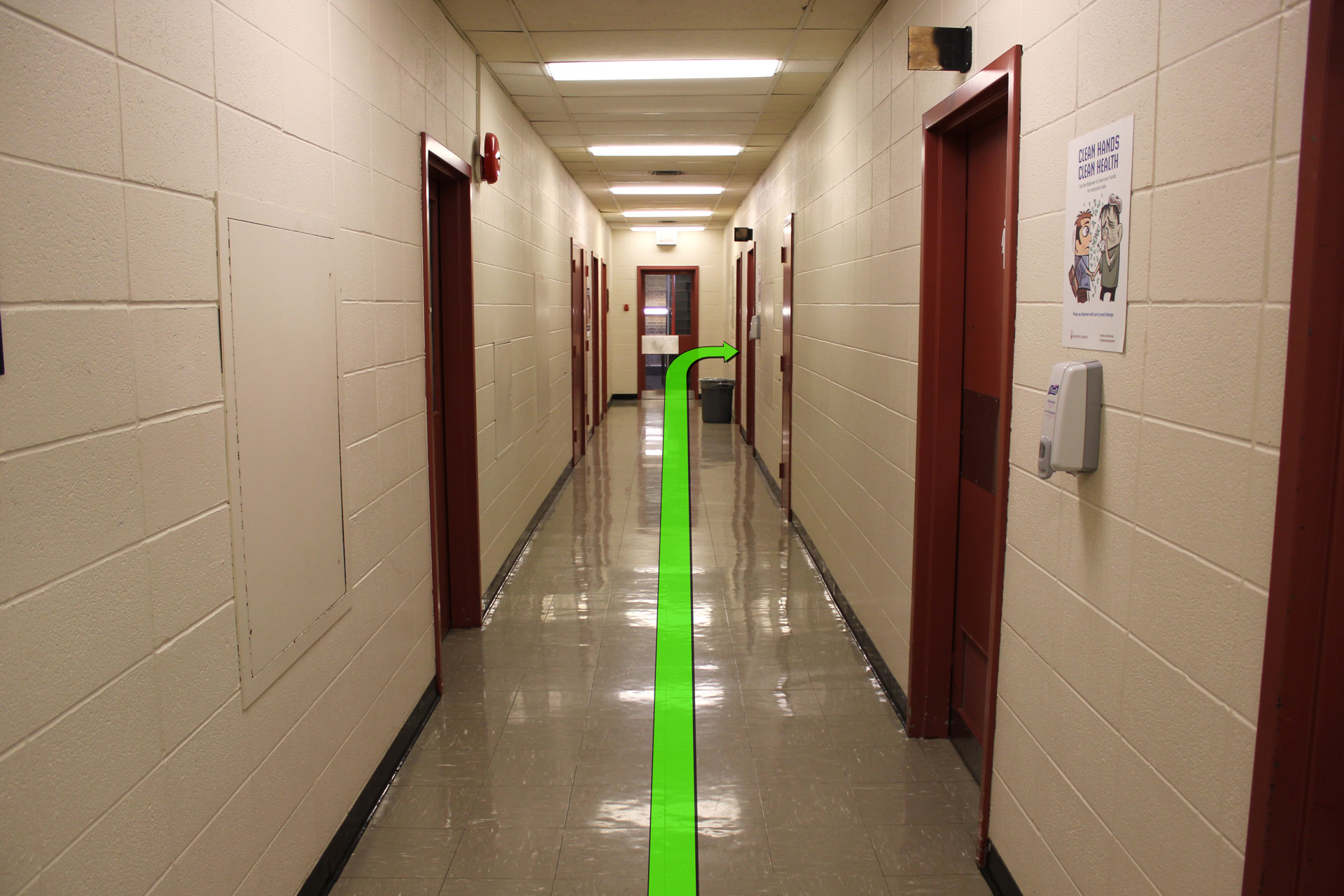 Walk straight towards the next set of hallway doors and enter the hallway.