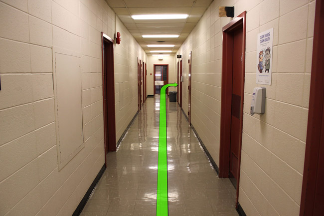 On entering the building walk straight towards the hallway on the right.