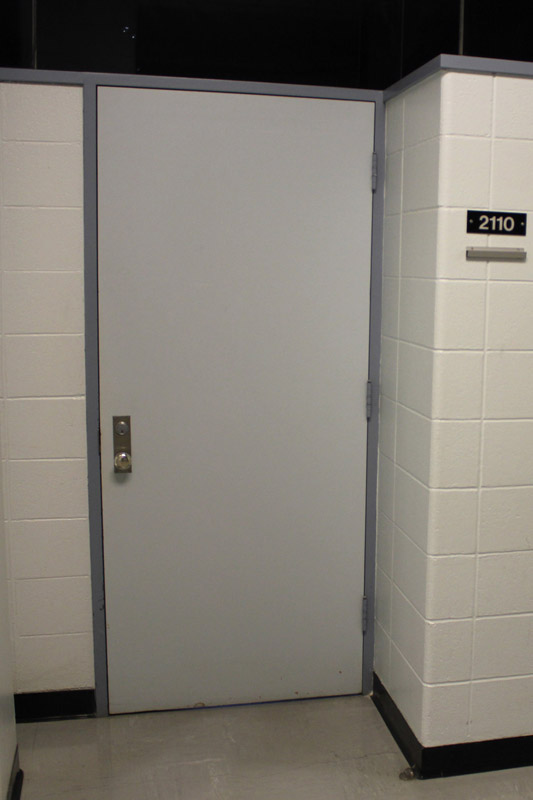 On entering the building walk straight towards the stairway doors on the left. Enter the stairway.