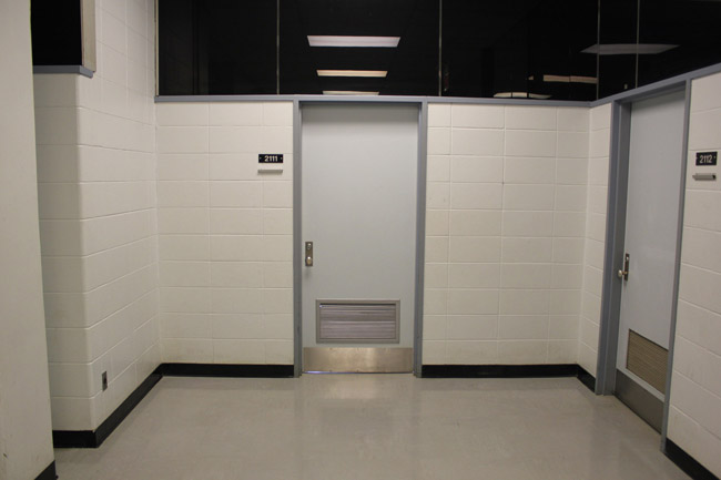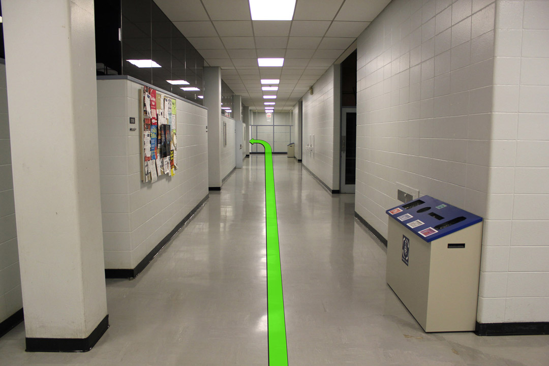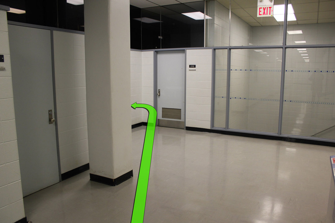On entering the building walk straight towards the stairway doors on the left. Enter the stairway.