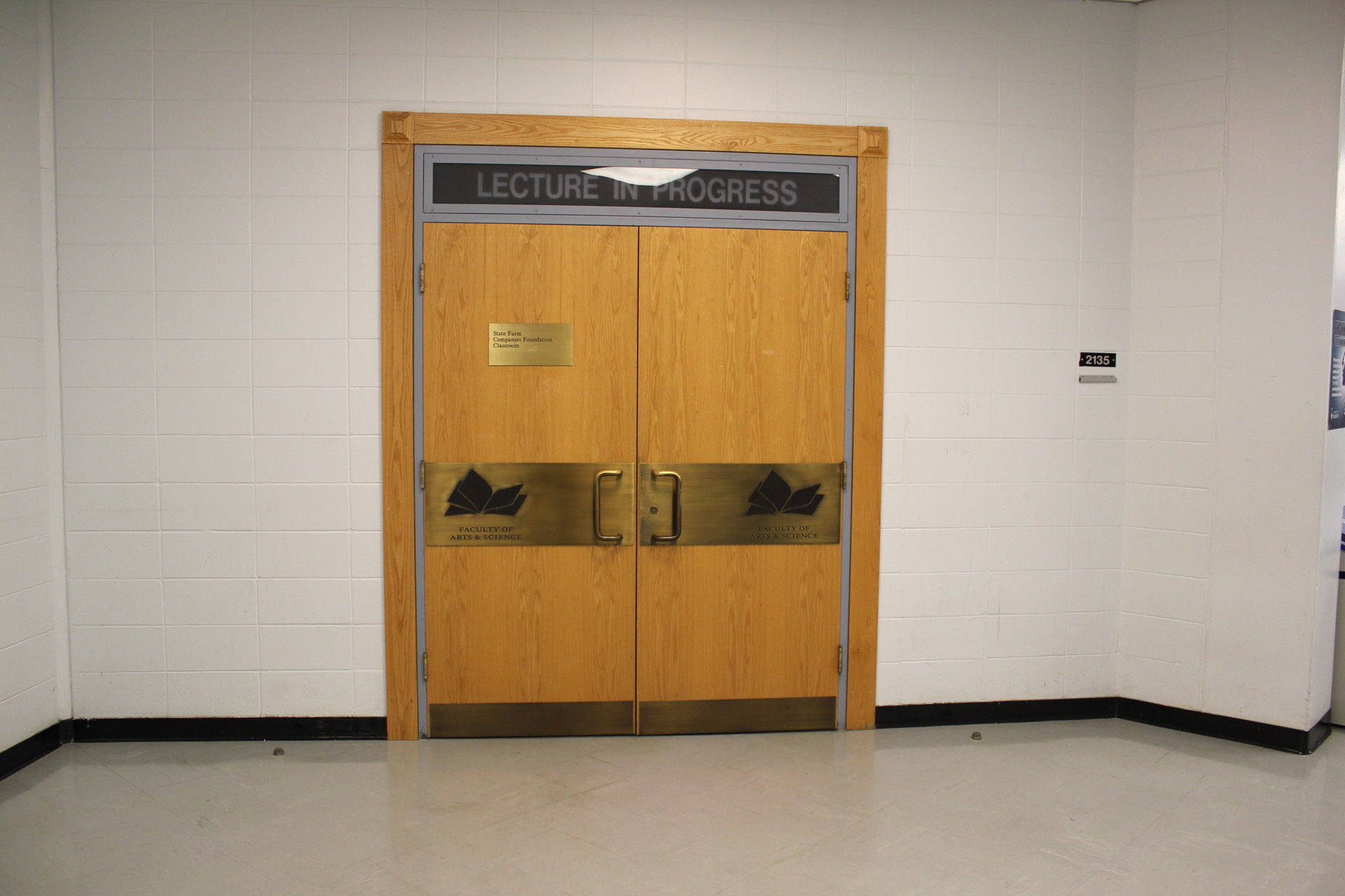 On entering the building walk straight towards the stairway doors on the left. Enter the stairway.