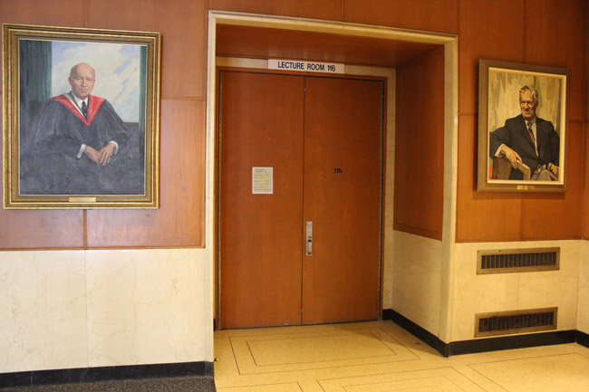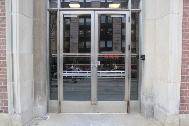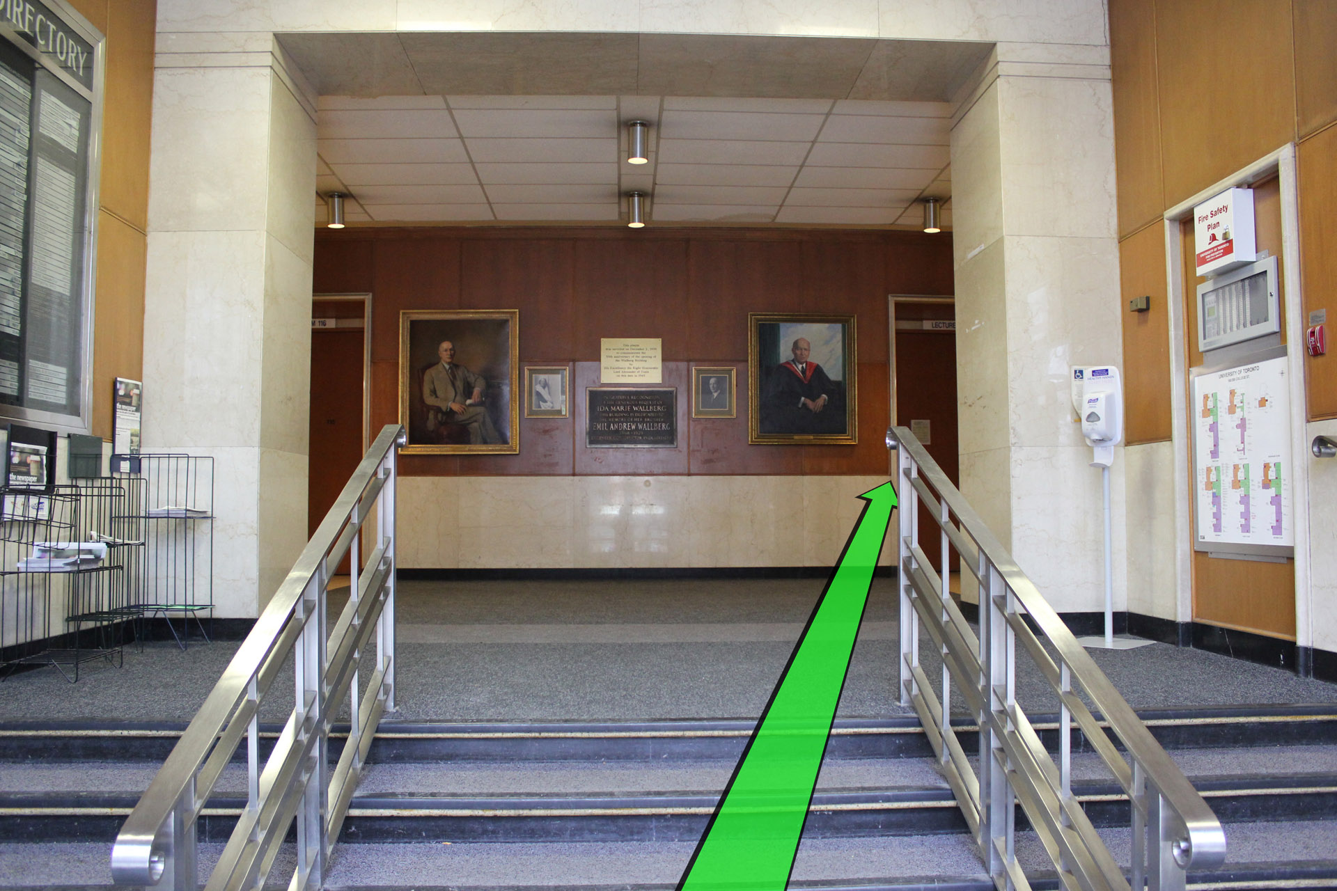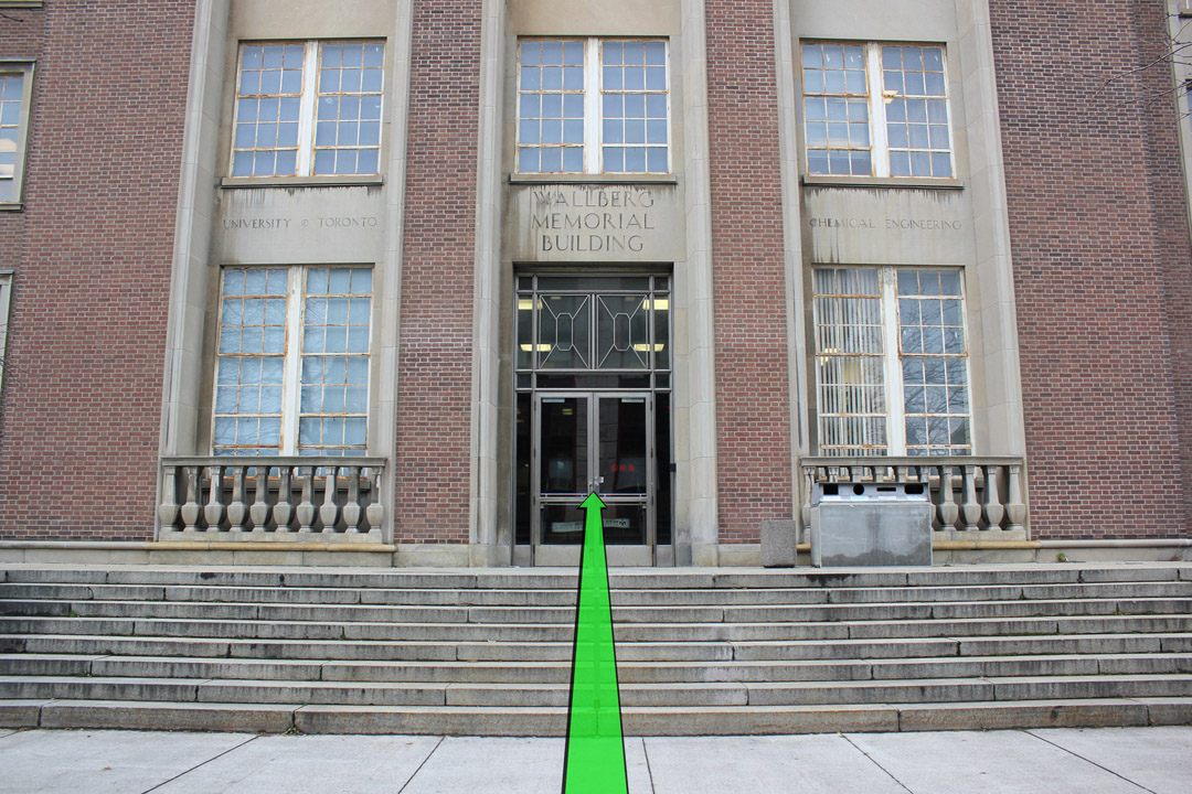 Walk from College Street towards the left entrance of the Wallberg Building.