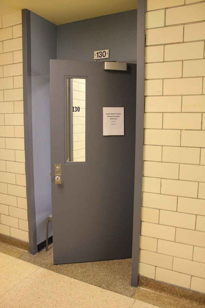 On entering the building walk straight towards the hallway on the left.